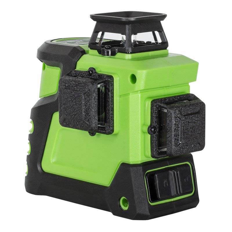 Компенсатор автоматически выравнивает лазерный луч в диапазоне ±3°. Благодаря этому, вам не нужно выставлять прибор по пузырьковому уровню. Также, за счет компенсатора, избегается искажения лазерных плоскостей от мелких неровностей пола. При отклонении прибора более, чем на 3° раздается звуковой сигнал, а лазерная линия начнет мигать.